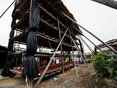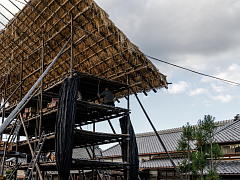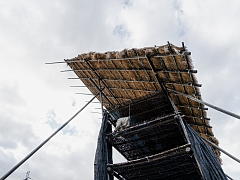 KAKIYA, shelves with a canopy, are built by farmers in the rice fields after the harvesting season. The KAKIYA looks like a big tower with a canopy. The canopy is made of straw and set on a wooden frame, and the floor is made of bamboo. Therefore, there is no risk of being blown away by strong winds.
