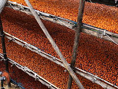 ![]() Approximately 1 ton of persimmons are placed on each layer. |