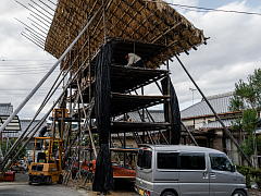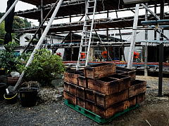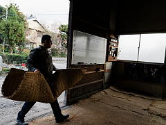 Since KAKIYA shelves are used only two months per year, the straw, bamboo and wooden frame are dismantled after use, and saved for the next year. The KAKIYA shelves are used over and over for many years.