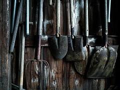 ![]() Farmers continue to use their tools with care. |
