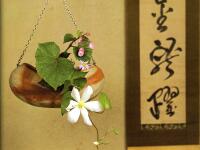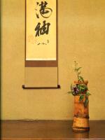 The tea-master deems his duty ended with the selection of the flowers, and leaves them to tell their own story. Entering a tea-room in late winter, you may see a slender spray of wild cherries in combination with a budding camellia; it is an echo of departing winter coupled with the prophecy of spring. Again, if you go into a noon-tea on some irritatingly hot summer day, you may discover in the darkened coolness of the tokonoma a single lily in a hanging vase; dripping with dew, it seems to smile at the foolishness of life.