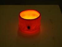 The ceramic bowl is then coated with glaze and burned (baked) in the kiln. Kuro Raku is burned at a temperature of 1,100C to 1,200C (2,012F to 2,192F) for approximately 10 minutes. A small hollow is made when Kuro Raku is taken out by pincers from the kiln. Only Kuro Raku has this small hollow and this serves as proof that the item is authentic Kuro Raku.