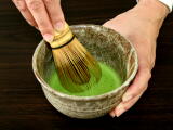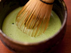 - Using the bamboo Chasen, whisk the Matcha until it has a rich foam on top.
