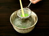 High grade Matcha is ground into very fine powder, so it gets rich foam on top when whisked with the bamboo Chasen. However it is also easy for static electricity to build up and for Matcha to clump. In order to improve the taste and avoid lumps, we strongly recommend that you sift the Matcha before whisking for a smooth texture. This is an essential step.