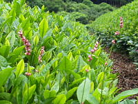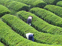 ![]() Rooting up weeds by hand at organic tea farm in summer season |