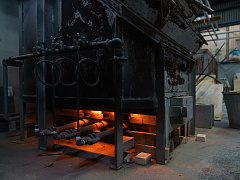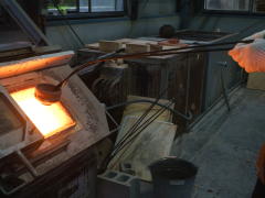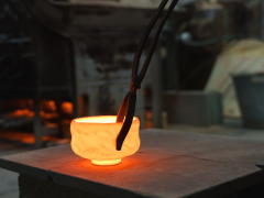 ![]() Kuro-raku which is red hot due to high temperature is taken out from the kiln. |