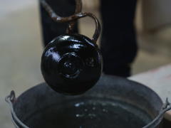 ![]() After taken out from the kiln, Raku-yaki is cooled in water to set glaze completely. |