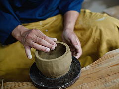 ![]() Raku-yaki is formed by hand without using the potter's wheel. |