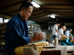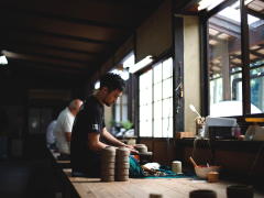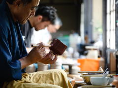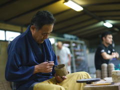 The Sasaki family is well-known for their traditional Raku-yaki at Shouraku Kiln. Shouraku Kiln opened in 1903, and is one of the most traditional Raku-yaki kilns in Kyoto. Yamato Sasaki, who is the son of Teruo Sasaki and the fourth head of Shouraku Kiln, succeeded to Kyoshitsu the second in 2011.
