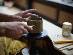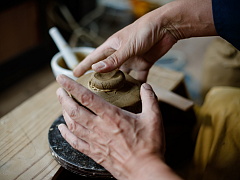 Raku-yaki is also characterized by its forming method. Raku-yaki is formed only by hand and spatula with the clay on a pallet, while most earthenware is made using an electric potter's wheel or kicking potter's wheel. There is a limit to the depth that can be produced by hand (the hollow of the hand). You will be attracted to the originality and uniqueness of works produced in this limited cubic volume.