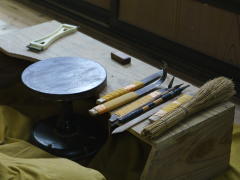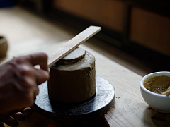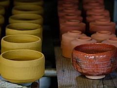 ![]() Clay of Raku-yaki is produced by mixing clay with materials which will not break in the high temperature kiln. |