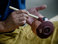 ![]() Each craftsman owns several original trimming tools and trims the works using the optimal one. |