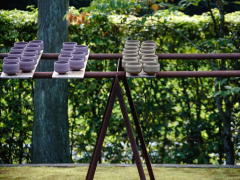 Kirai Kiln produces avant-garde and novel works which are not restricted by traditional style, while still adhering to traditional Raku-yaki techniques. Shouraku Kiln, on the other hand, strictly follows the footsteps and traditional methods of Raku-yaki.