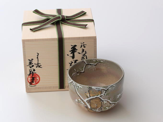 My wife purchased this and gave it to me as a gift(yea, at my suggestion). It is an elegant chawan that is a great contrast to several "wabi-sabi" chawan that I usually use for tea. That contrast is very good for conversation during tea. All of the catalog description is very accurate. I particularly like the way the gold highlights add to the feeling of a sunny, crisp and peaceful morning after a big snowfall. The additional branches on the inside of the chawan really add dimension to design. I find that the shape of the bowl is comfortable in my hands. Two additional things about the chawan that aren't described but are great features. The chawan can "breath" because the foot was not covered with glaze. Lastly, there is a swirl, not just an indentation, in the bottom of the bowl. This swirl is a great "parting gift" when you are finishing a bowl of tea. I think the price is very reasonable for a chawan that has so much work and talent put into it. But, that is my take on it... |