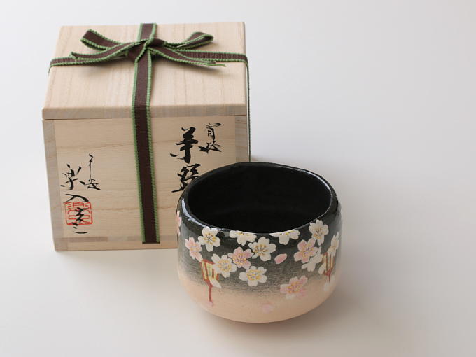 This chawan is very well made piece of Raku Yaki. When I first received it I had a problem with it because I thought it should be pure black, but that is not the artist’s intentions. The bowl is more of a gunmetal grey (hey, they are all different since they are handmade and yours might be darker and/or black). It is very porous but by no means delicate. The art is meticulous, though, The flowers on mine are a bit more translucent and not as dark or as bright as the representation on the web.. I bought this bowl because it symbolized my state of mind at the time of the purchase. Having been recently widowed this bowl represented my sorrow and the light from the lanterns represented the light of hope that the grief would soon pass. While there is no such thing as having a timing for the bereavement process, this bowl is beautiful and well made and it helps me feel better when I drink my matcha from it. It has a special meaning for me and I’m glad it’s in my collection.