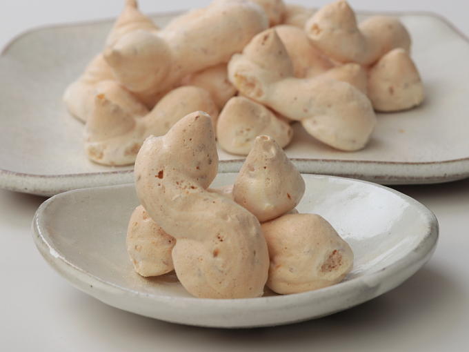 As for meringues in general, this miso meringue has the same porous texture that gives a light crunch to the bite, followed by a fast melting action. Its pronounced sweetness is expected of a meringue and detectable on the palate as soon as it melts on the tongue. What makes this different from most meringues I've tried is the pleasant savoriness to the sweet flavor, coming from the miso. I can't smell any miso aroma but the salty side of the flavor helps my palate to tolerate this meringue sweetness, giving off a flavor similar to salted-caramel. A savory note is always a welcomed addition to a sweet snack, making it easier to enjoy and addictive. I think this snack best as an accompaniment to strong green and strong dark teas.