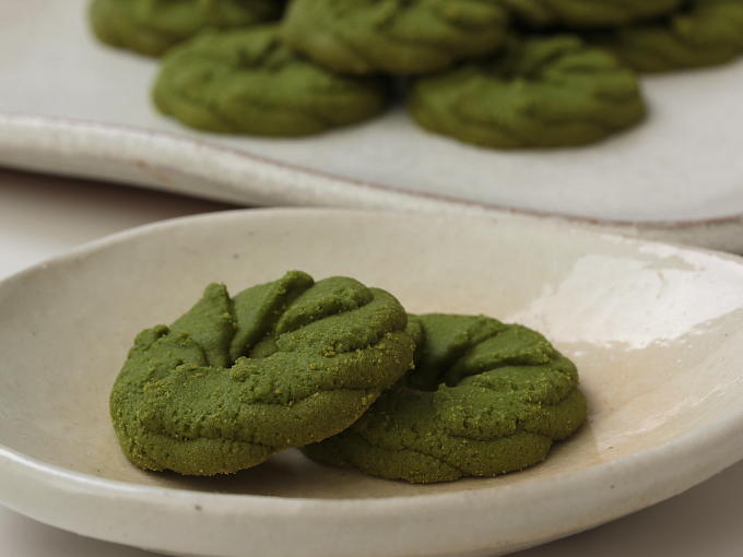 Very fresh and crunchy cookies with a delicate matcha flavor. Not sweet at all.