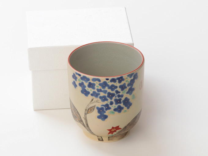 | Review | Today, after only 8 days from placing the order, I received my package. Opening it was like the unfolding of a little garden, from the beautiful paper to the gorgeous boxes holding the items, including this cup. It made me smile and my insides danced with delight at the sight of this cup. It is hard to see its true beauty even from these pictures. The cup as a mat gold sheen all around and the blue hydrangeas almost like 3-D on the cup's surface and shiny with the tiny golden dots. I've never seen and held such a beautiful piece of tea art. The service, packaging, instructions, explanations all very clear, easy to follow in English. I highly recommend this business, cup, the teas. I'm transported into another world with every sip right outside on my own patio. Thank you! |