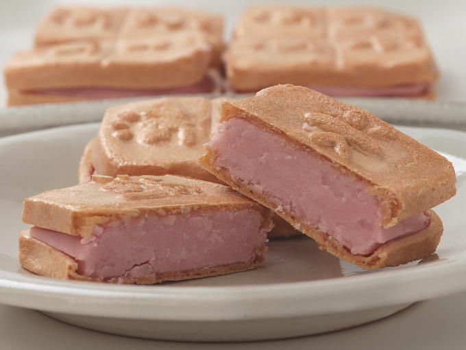 Sakura Monaka has a genmai smoky roasted smell and is stuffed with bean paste. In my opinion the filling looks a bit different than in the picture, it is not as pink and hardly tastes like anything. It might be popular with somebody who prefers bean paste texture. I appreciate the quality and craftmanship on this wafer but the taste is not for me. :)