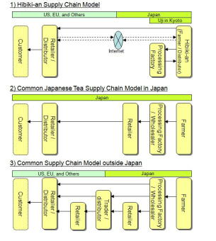 Our wholesale prices are quite low, almost the same as in Japan, because of direct sales as shown in the right side chart. Because we have tea farms in Ujitawara, Kyoto, the central location of Japanese tea production, and our tea is shipped directly from Hibiki-an to you, we can offer you the freshest and highest quality tea for the lowest possible price. It had never been easy for you to directly purchase tea leaves from Japan. However it has now become much easier thanks to the internet and the growing speed and efficiency of international transportation service. Therefore, by purchasing directly from us at Hibiki-an, you will be able to offer your customers much fresher and higher quality tea with much lower prices.